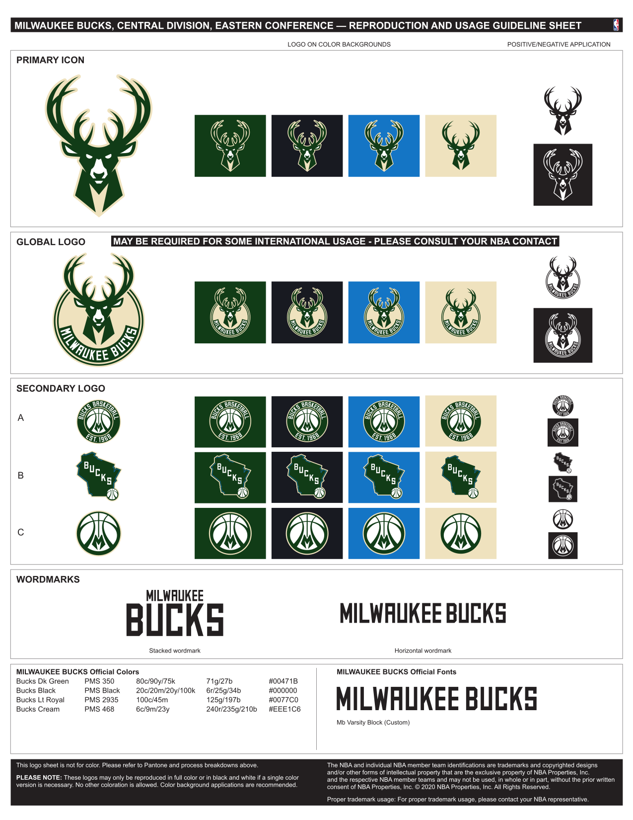 - ^ "Milwaukee Bucks Reproduction and Usage Guideline Sheet". NBA Properties, Inc. Retrieved March 1, 2025.